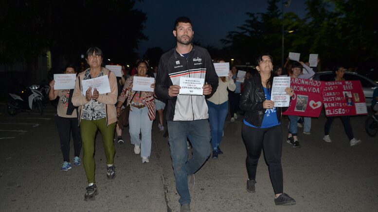 Entre 400 y 500 personas acompañaron el pedido del padre, quien exigió que la mujer no sea liberada. “Está acá como si nada hubiera pasado, a menos de dos meses del ataque”, cuestionó Diez, rodeado por vecinos que replicaron su pedido de justicia.