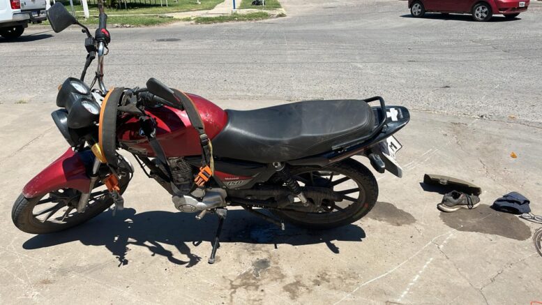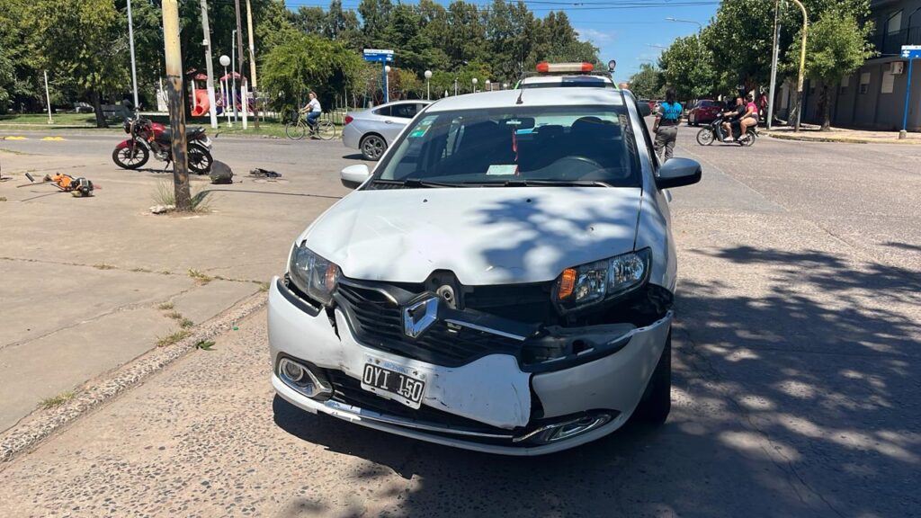 Que el día 08 del cte, mes y año siendo las 12.00 horas aproximadamente, por causas que se tratan de establecer se produce una colisión en la Avenida Maya y Chacabuco de este medio, entre un motovehículo marca Motomel 150 cc dominio colocado A218TLM color rojo, conducido por el vecino Semillán Mario Roberto (49) y un automóvil marca Renault Logan dominio OYI150 de color blanco, conducido por Lespade Cristian Daniel Omar (48).
