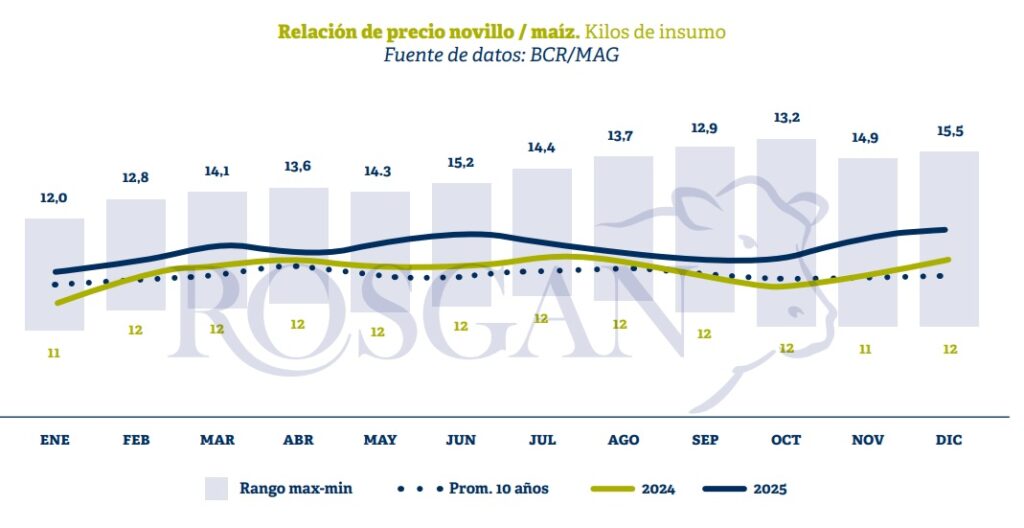 Algo similar está ocurriendo en Uruguay. Un análisis del consultor uruguayo Eduardo Blasina destaca que en 2025 el país registró una disminución en la edad de faena, al mismo tiempo que se lograron animales más pesados. Según su evaluación, este proceso ya puede considerarse tendencial y podría profundizarse en los próximos años. De manera categórica, el análisis señala que este cambio tiene una base clara: mayor uso de grano, mayores ganancias de peso y una relación insumo/producto ampliamente favorable.