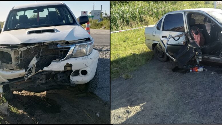 Que el día 25 del cte., mes y año siendo las 07:45 hs aproximadamente y por circunstancias que se tratan de establecer se produce un siniestro vial en la Ruta Nac. 5 kilómetro 314 este medio, entre un vehículo marca Chevrolet modelo Corsa dominio GNL 164 conducido por el ciudadano Pérez Luis María (61) siendo Acompañando por Quiroga Silvia Viviana (54), quienes circulaba en dirección Pehuajó – 9 de Julio, y una Pick Up marca Toyota modelo Hilux, dominio DEG 477, conducido por el ciudadano García Horacio Alfredo (77) siendo acompañado por los ciudadanos *Uriarte Carlos (36), Grassi Yesica Paola (35), y dos menores de edad menores, los cuales venían circulando por el camino real de la localidad de Cadret.