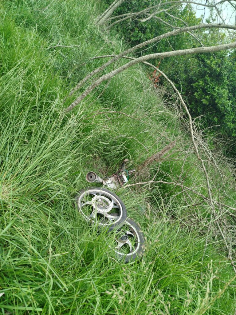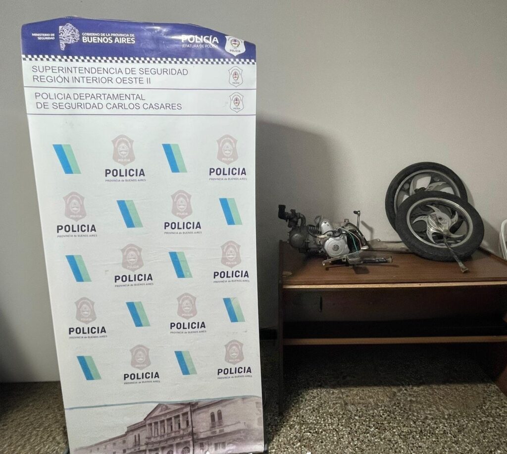 Asimismo los efectivos policiales prosiguiendo con las investigaciones en un camino vecinal entre las calles Schapira y Los Andes de este medio, logran dar con la motocicleta restante la cual se hallaba desarmada en su totalidad, recuperando su motor, ruedas (2) y caño escape. Motocicleta reconocida y entregada al Dte. Asimismo se prosigue con la investigación a los fines de dar con los autores responsables de los presente hechos.