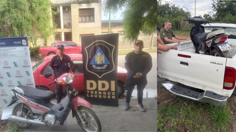 A raíz tareas investigativas efectuadas por el grupo GTO de esta comisaría, juntamente con DDITL con asiento en esta ciudad, y personal del CPR de este medio, logran hallar una motocicleta abandonada sobre unos pastizales, sito en calle San Luis entre Moreno y Carlos Arroyo de esta ciudad, donde la misma se halla sin elementos faltantes, siendo la que había sido sustraída de la escuela Técnica. Motocicleta reconocida y entregada al Dte.