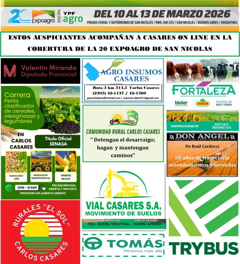 Casares On Line, medio perteneciente a ABOPA (Asociación Bonaerense de Periodistas Agropecuarios) y del Pool de Periodistas Agropecuarios para Expo Agro 2026