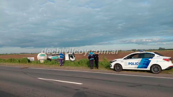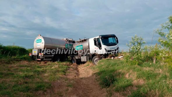 Un camión perteneciente a una firma dedicada al traslado de productos lácteos protagonizó un incidente vial en las primeras horas de la mañana del jueves, al salirse del pavimento en el kilómetro 161,500 de la Ruta Nacional N° 5.