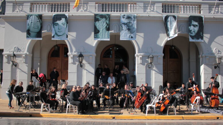 Uno de los momentos más significativos fue la intervención artística en vivo de Ricky Túnez, quien realizó una pintura mientras la Orquesta de la Escuela Municipal interpretaba canciones alusivas a la fecha, generando un emotivo espacio de expresión artística y reflexión colectiva.