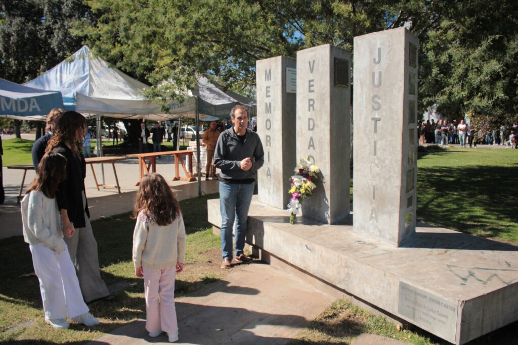 Durante la ceremonia se realizó una ofrenda floral en las placas conmemorativas y se compartieron palabras alusivas a la fecha a cargo de Raúl Borrás, quien reflexionó sobre la importancia de sostener la memoria, la verdad y la justicia como pilares fundamentales de la democracia.