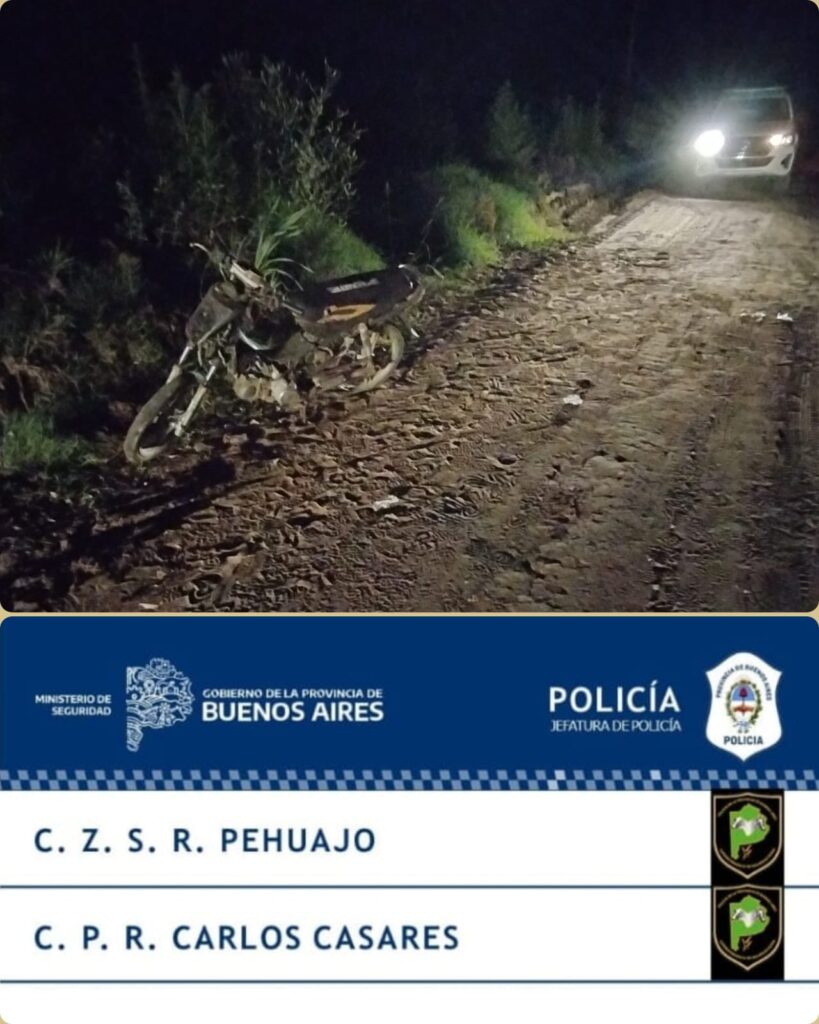 El día jueves, personal del Comando de Prevención Rural (CPR) tomó conocimiento de un accidente de tránsito en el camino rural Real a Cadret, por lo que se comisiona un móvil policial con personal. Presente en el lugar los uniformados, constatan la presencia de una persona mayor de edad, domiciliada en este medio (Casares), el cual habría perdido el control de su motocicleta sufriendo una caída, dejándolo en estado de inconciencia.